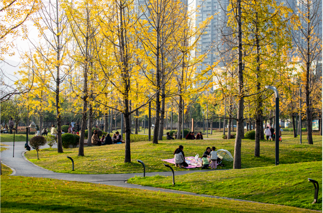 天气晴好时,云阳的公园里总坐满了享受阳光的人们。老人们聚在一起下棋聊天,年轻人在草坪上野餐看书,小朋友在景观水渠间与光影一同戏水、逗鱼。人们沐浴在阳光下,享受着这座新城带来的舒适与便利。