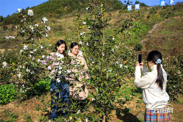 “往日只知道油茶能榨油,真没想到油茶花这么漂亮。这满山的油茶花,简直就是冬日里送给我们的惊喜。”市民陈女士看着眼前的美景,满脸惊喜地说道。