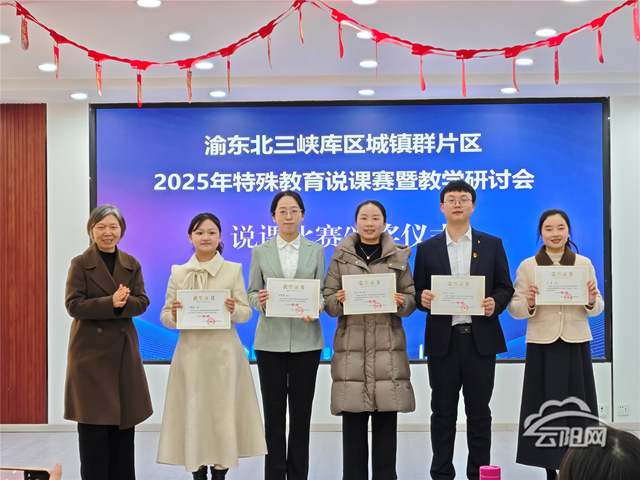 云阳网讯(通讯员 牟枳葳)11月28日,渝东北三峡库区城镇群片区2025年特殊教育说课大赛在巫山县隆重举行,云阳县特殊教育学校牟枳葳老师在来自渝东北片区12所学校的参赛选手中脱颖而出,荣获一等奖。
