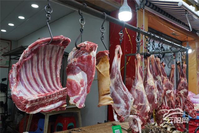 在柏杨湾智慧农贸市场,记者看到,售卖羊肉的摊位上摆放着肉色红润、纹理清晰的羊肉,还有肥瘦相间的羊排、健壮结实的羊腿,吸引着不少市民驻足挑选。摊主熟练地挥舞着手中的刀具,根据顾客的需求精准分割羊肉。