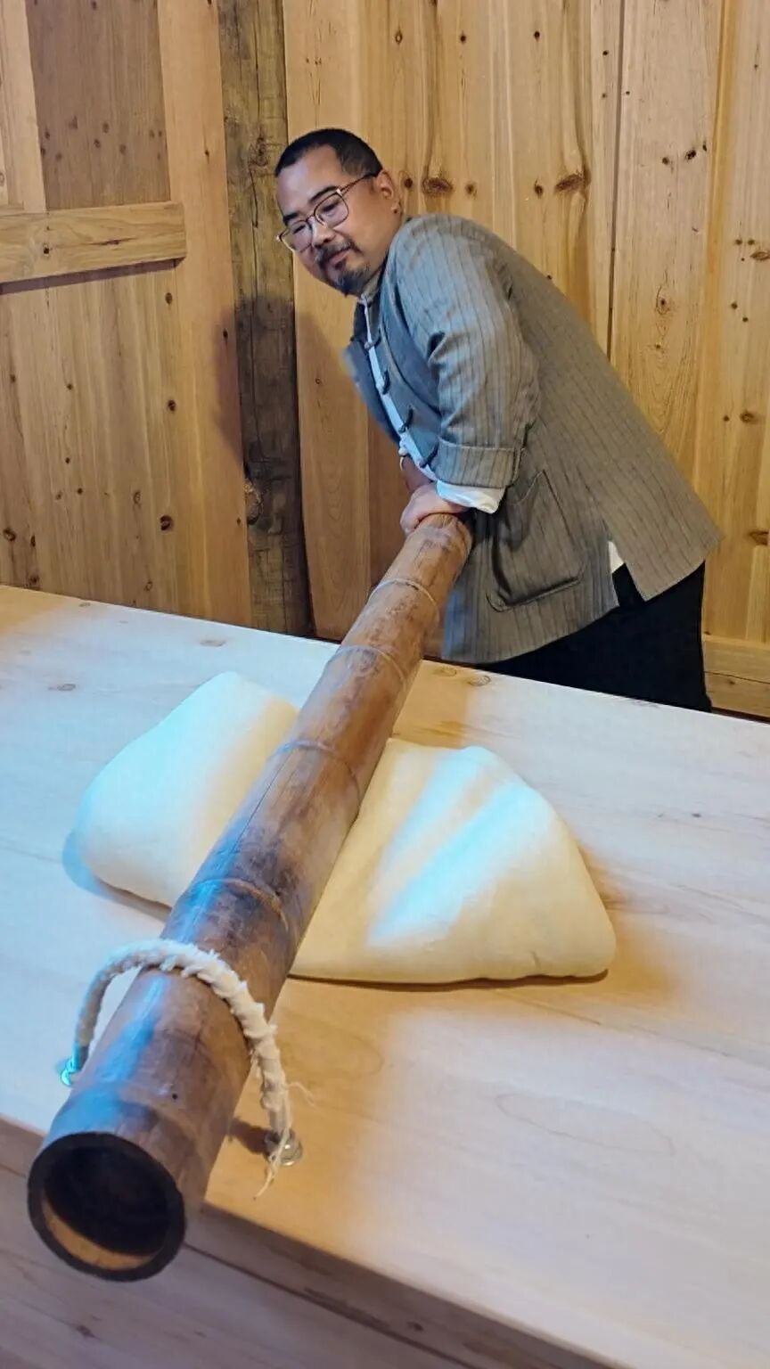 粗犷中见精致的手工揉制、竹杠压制工艺