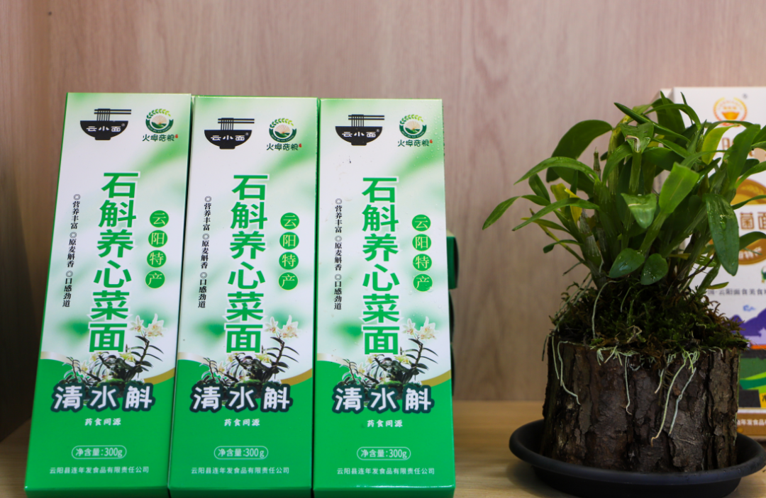 走进火埠村村播学院基地,一款名为“清水斛——石斛养心菜面”的产品引人注目。这是村里注册“火埠菇粮”品牌后,与县里龙头企业连年发面业合作研发的铁皮石斛养生面。