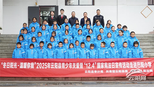 云阳网讯(记者 曾麒麟)寒冬送暖传关爱,法治护航助成长。12月4日,2025年云阳县青少年关爱暨“12·4”国家宪法日宣传活动在巴阳小学开展。活动由县审计局、团县委、县法院联合主办,为该校52名留守儿童送去了温暖包与法治知识“大礼包”,让孩子们在冬日里感受到浓浓的关怀。