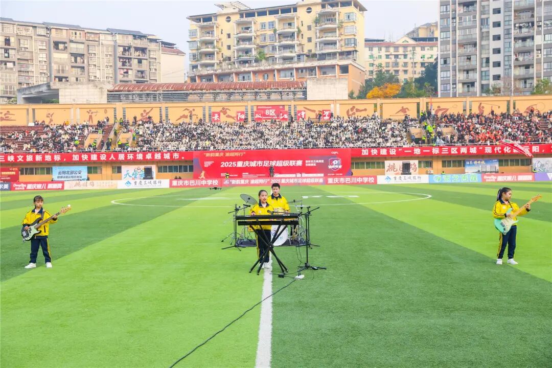 这支乐队的吉他手和贝斯手是听力障碍学生,键盘手兼主唱存在视力障碍,而架子鼓手则是一位孤独症少年。自今年五月成立以来,他们从校园排练室走向广阔天地,不仅在八月远赴海南,于“2025乐队中国青少年音乐节”决赛中荣获混龄组第四名,如今更首次站上了家乡“渝超”联赛的主场舞台。