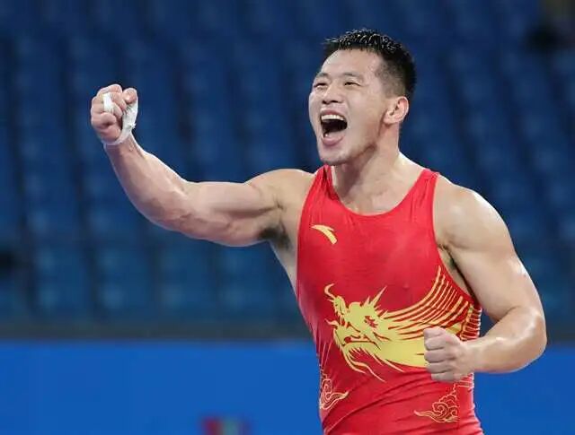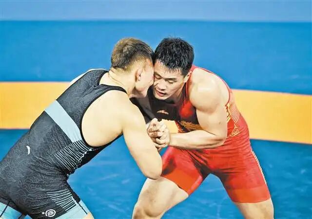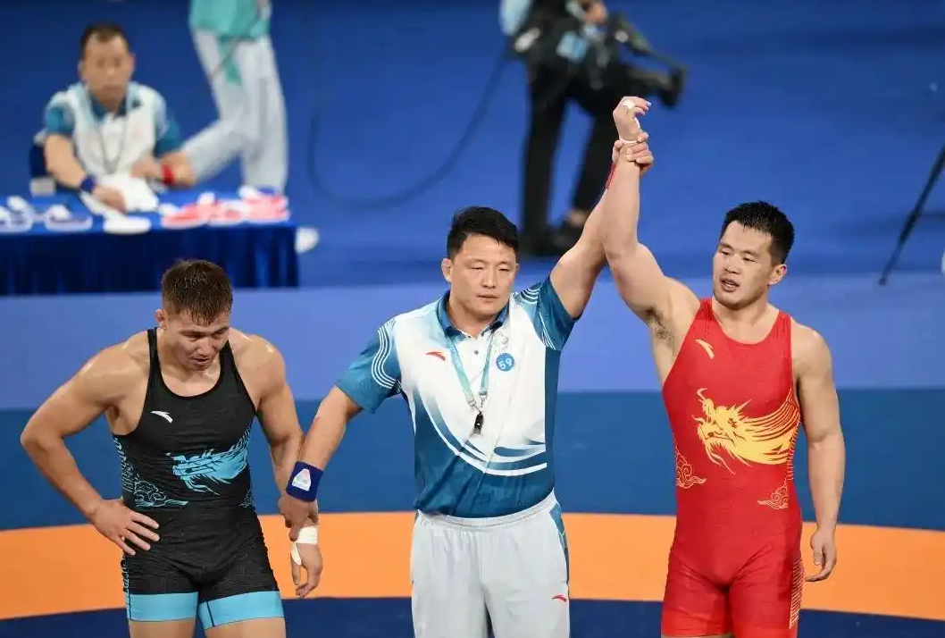 男子古典式97公斤级决赛结束的一刻,重庆选手将新疆选手扑倒在垫上,顺势在对手腰际重重一拍,起身奔下台去。记分牌定格在4:1。