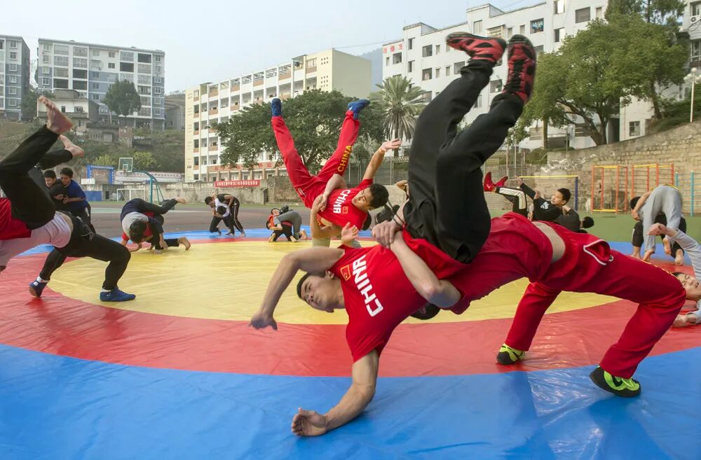 2015年冬天,学校领导注意到,这里的孩子因常年爬坡上坎,普遍上肢力量好、爆发力强,很适合作为摔跤的“好苗子”。