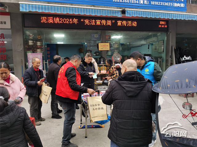 云阳网讯(通讯员 丁一)近日,泥溪镇巧妙利用赶场日人流密集的有利时机,在集镇中心区域组织开展了2025年“宪法宣传周”集中宣传活动,营造了学习宪法、尊崇宪法的浓厚氛围。