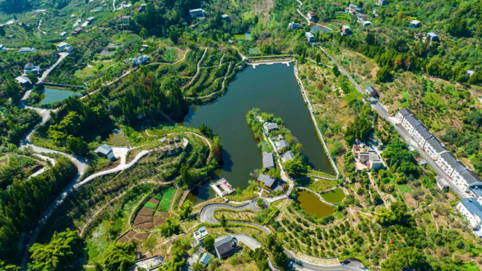 融合规模化果林、生态鱼塘、中式民宿