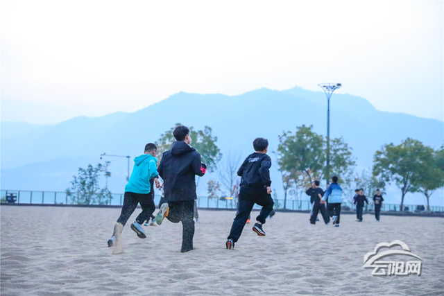 “我觉得这里的空气比较新鲜,风景特别好,会更有趣一点。”云阳县第三初级中学田径社团学生邓慧慧兴奋地分享道,“我非常喜欢在这里训练,边训练也可以欣赏沿途的风景,觉得特别有意思。”对她和许多同学而言,每月一至两次的沙滩训练已成为一份特别的期待。