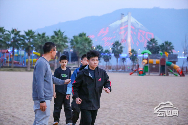 在阳光沙滩,学生们在教练的指导下,分组进行着不同类型的跑动训练。短跑冲刺时,沙地增加了阻力,对爆发力提出了更高要求;进行长跑耐力练习时,开阔的江景和清新的空气缓解了疲惫;折返跑训练中,孩子们灵活转身,沙粒飞扬,充满了活力。训练结束后,学生们坐在沙滩旁,互相进行腿部肌肉的按摩与放松,在欢声笑语中结束了训练。