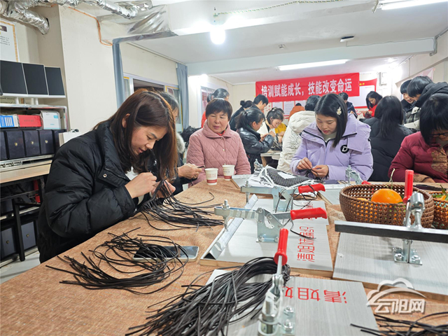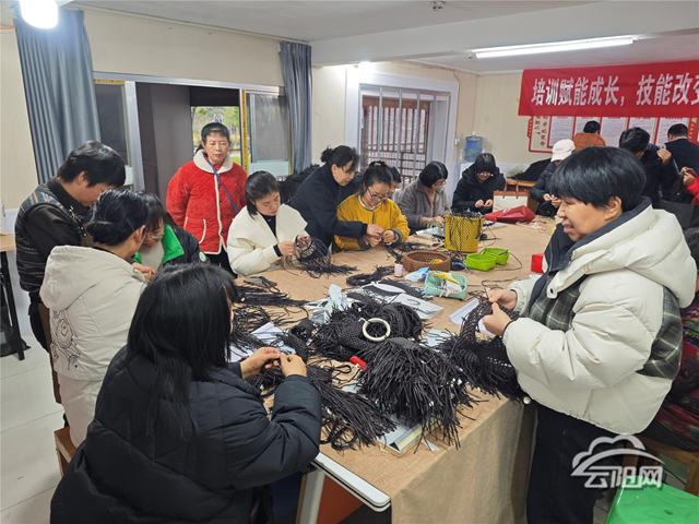 云阳网讯(记者 曾麒麟)“穿绳、绕圈、打结,跟着老师学,没多久就能编出简单的小物件了。”12月23日,在青龙街道黄河职业培训学校的编织教室里,二十余位学员正专注地进行手工绳编创作。彩绳在指尖翻飞灵动,转眼便勾勒出包包雏形、鞋面纹路等精致样式。作为历史悠久的非遗技艺,青龙街道、蔈草镇的传统手工绳编正完成从体验乐趣到创造价值的蜕变,带动近200人实现家门口灵活就业增收。