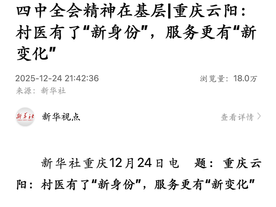 《重庆云阳:村医有了“新身份”,服务更有“新变化”》