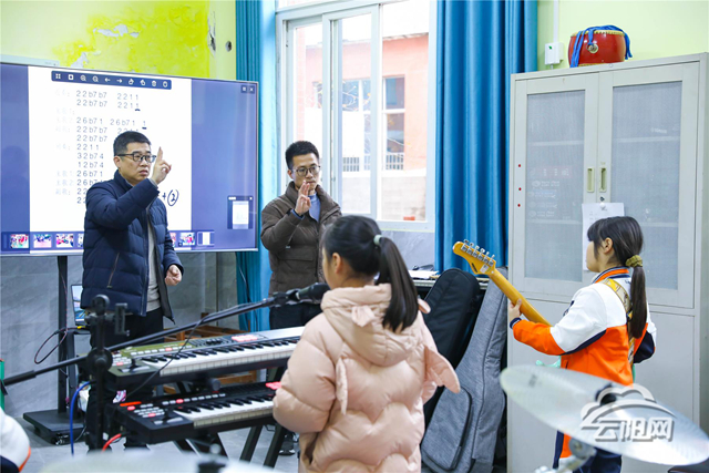 在音乐教室,“萤河计划”乐队的孩子们熟练地弹唱歌曲。记者与乐队的教师代表、学生进行了细致交流,聆听乐队组建的初衷与历程,了解孩子们的点滴进步与成长喜悦,记者对孩子们的成长和教师的付出表示肯定。