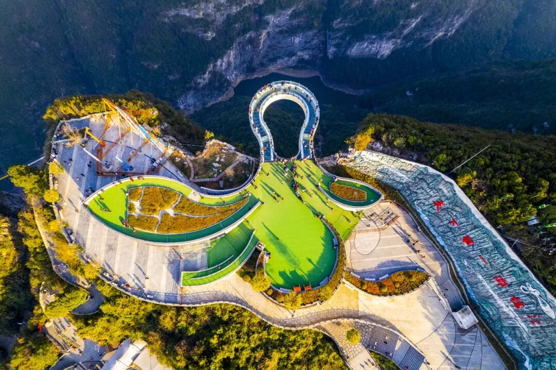 国家5A级旅游景区、世界地质公园及“中国天然氧吧”。景区以“天下第一缸”龙缸天坑为核心,集喀斯特地貌奇观、土家风情于一体,被誉为“长江三峡最后的香格里拉”。这里还有世界最长悬挑玻璃观景平台,挑战胆魄的云端视角;还有那“彩虹大秋千”——世界最高、最快、最猛的秋千,坐上去直接“起飞”,风在耳边呼啸,心跳飙到180。