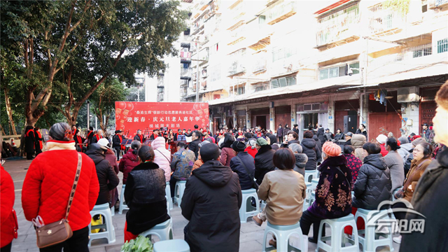 云阳网讯(记者 徐菁)在元旦佳节来临之际,为深入宣传党的二十届四中全会精神,弘扬尊老敬老传统美德,丰富社区老年精神文化生活,12月26日,县老年人体育协会联合县文化馆、青龙街道白鹤社区、云阳爱尔眼科医院共同举办“庆元旦迎新年”银龄行动送文化进社区展演活动,为辖区居民献上一场丰富多彩的文艺盛宴。