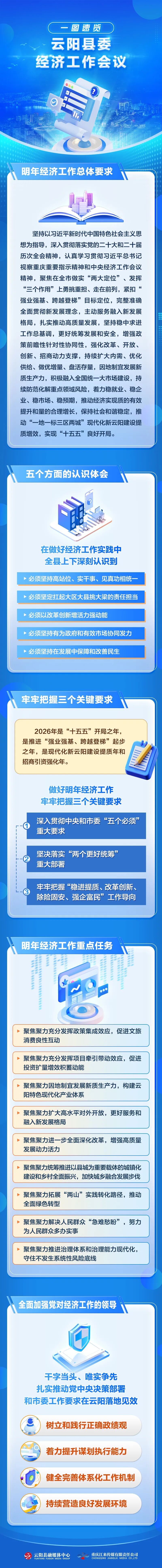 2025年极不平凡、极其难忘。面对需求收缩、预期偏弱,关税战冲击,叠加债务化解、经济数据挤“水分”等多重约束,全县上下牢记总书记殷殷嘱托,紧扣党中央决策部署和市委工作要求,突出稳进增效、改革创新、除险固安、强企富民工作导向,干字当头、唯实争先,全力以赴拼经济抓落实、拼项目争规划、拼招商见真章,全县政治生态清朗清新,干部群众心齐气顺,各项事业向新向好,“一地一标三区两城”现代化新云阳建设迈出坚实步伐。