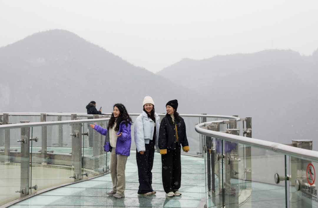 龙缸景区更是凭借新年首场降雪与独特地质奇观