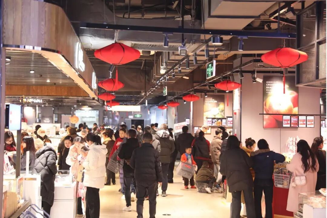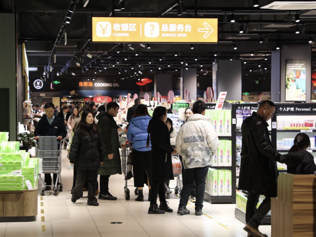 收银台前人流络绎不绝