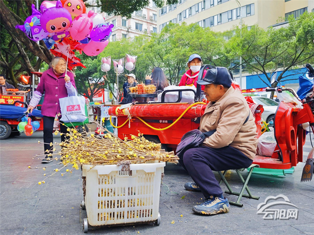 寒风中,不仅有暗香浮动,更有一份温暖的坚守。在中环路,家住人和街道的黄玉国又出摊了,小推车上满载着刚从自家梅林剪下的腊梅枝,花苞累累,香气扑鼻。