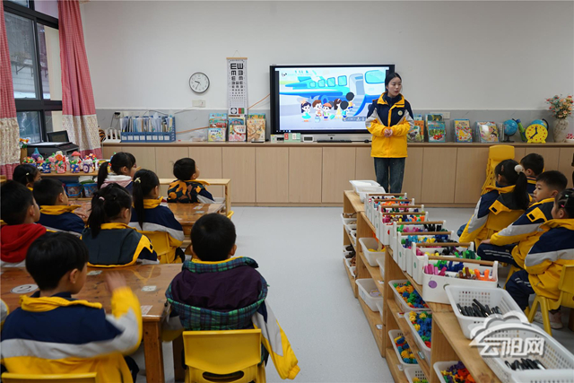 幼儿园还将文明养成融入日常教学与特色活动中。在“垃圾分类小课堂”上,老师借助色彩鲜明的分类垃圾桶模型,深入浅出地讲解垃圾分类知识,帮助孩子从小树立环保意识。各班开展的“文明出行,安全相伴”主题活动,则通过情景模拟、互动问答等形式,帮助孩子们掌握交通安全规则小知识。“红灯停、绿灯行、黄灯等一等,我们都要遵守交通规则。”李蔓妮小朋友用稚嫩的声音说道。