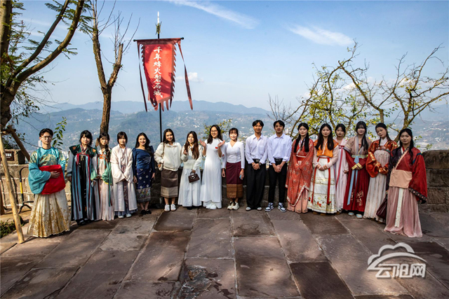 在磐石城下,学子们举目仰望,只见古城巍然屹立于长江之畔,气势雄浑。步入城内,大家踏过青石台阶,轻抚城墙垛口,在斑驳古迹中静听历史回音;登临城顶,俯瞰长江百舸争流,沉浸式感受三峡文化的深厚底蕴。随后,留学生们还参与了成人礼仪式,与云阳青年共同宣誓,亲身体悟中华传统礼仪的魅力与城市的人文温度。