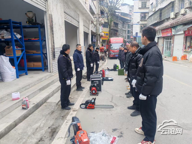 活动现场,镇应急办工作人员结合本地冬季火灾、低温冰冻等灾害特点,围绕森林灭火、防汛抗旱相关装备开展培训,重点讲解电锯、高压水泵等常用装备的操作流程、维护要点及存放规范,避免因维护不当影响使用效能。实操环节,参训人员分组实战演练,工作人员现场纠错指导。