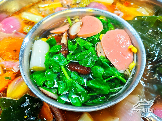 正如摊主和市民所言,豌豆尖的烹饪方式极为灵活多样。最常见的是清炒,只需热锅快炒,搭配少许蒜末和盐,便能最大程度保留其本真的鲜甜脆嫩。煮汤则是另一绝,无论是简单的素汤,还是与肉丸、酥肉、滑肉同煮,临起锅时撒上一把,瞬间清香四溢,为汤品注入灵魂。在云阳人的冬季饮食中,豌豆尖更是火锅、汤锅和麻辣烫里的点睛之笔,在翻滚的汤汁中快速涮烫几秒,吸饱滋味的同时仍保持脆爽,既能解腻降燥,又能丰富口感层次。此外,凉拌或作为面条、米线的浇头,也都是常见的家常吃法。