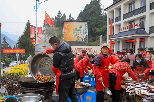 宴席不仅是味蕾的享受,也是交流的平台。活动期间,工作人员还简要介绍了近期推出的养老补贴和医保新政策。村民们听得认真,不时点头交流。居民聂云建对此感触颇深:“这种形式非常好,大家聚在一起学了一些政策,坐在一起吃饭更像一家人了,感到非常温暖。”