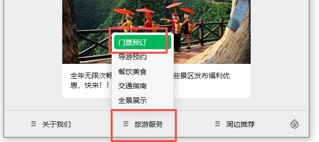 点击菜单栏“旅游服务”,选择“门票预订” 进入购票页面;