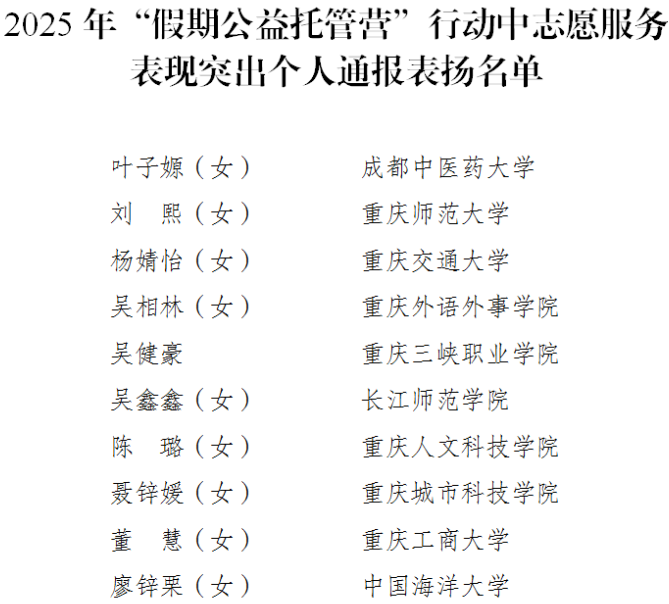 《关于表扬2025年“假期公益托管营”行动中志愿服务表现突出个人的通报》