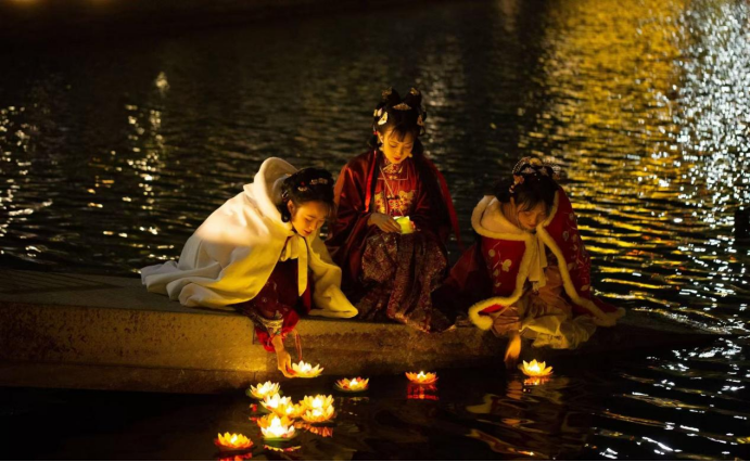 万人祈福盛景:景区组织“万人接力放河灯祈福接力活动”,盏盏河灯顺流而下,寄寓美好愿景,呈现温馨而壮丽的画面。