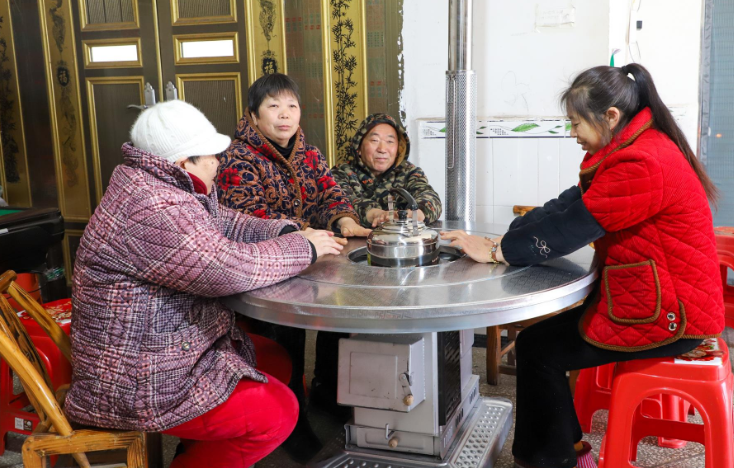 在已使用无烟烤火炉一年多的戴爷爷家中,炉火正旺,炉上热着饭菜,室内温暖如春。曾经常年伴随烧柴取暖而来的烟熏火燎景象,已成为过去。戴爷爷的老伴谢婆婆满意地表示:“这个烤火炉既暖和也没烟,大家围坐在一起很舒服。平时热饭热菜也很方便,确实好用。”