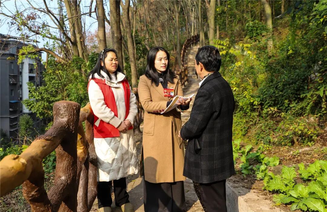 群众的烦恼,被毛旭辉记在了心里。在社区走访中,她了解到,随着附近卧龙居小区后门关闭,这条山路成了大雁社区5000多名居民前往公园锻炼的主要通道,改造需求极为迫切。她迅速行动,与黄启刚、陈斌等委员共同深入调研,将居民呼声转化为《关于为大雁社区居民修缮或优化前往果林人家步道的建议》的提案,于2025年初提交县政协。