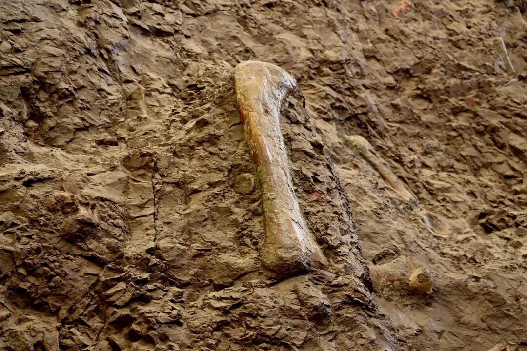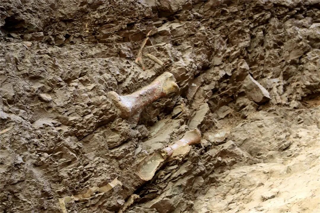 近5000块化石密集镶嵌,涵盖头骨、牙齿、椎体等骨骼,涵盖蜥脚型类、兽脚类、鸟脚类、剑龙类、基干新鸟臀类五大类恐龙化石,近百条恐龙在此长眠,构成了一个完整的恐龙群落。