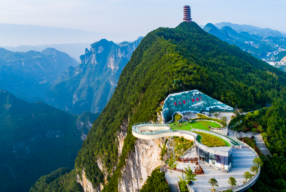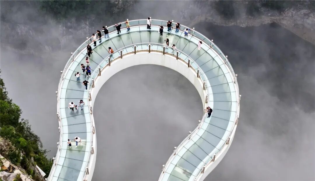 站在玻璃廊桥上,脚下是700多米深渊,玻璃桥面澄澈如无物,云雾穿行脚底,抬头是连绵的青山,风一吹,连心跳都跟着悬空。