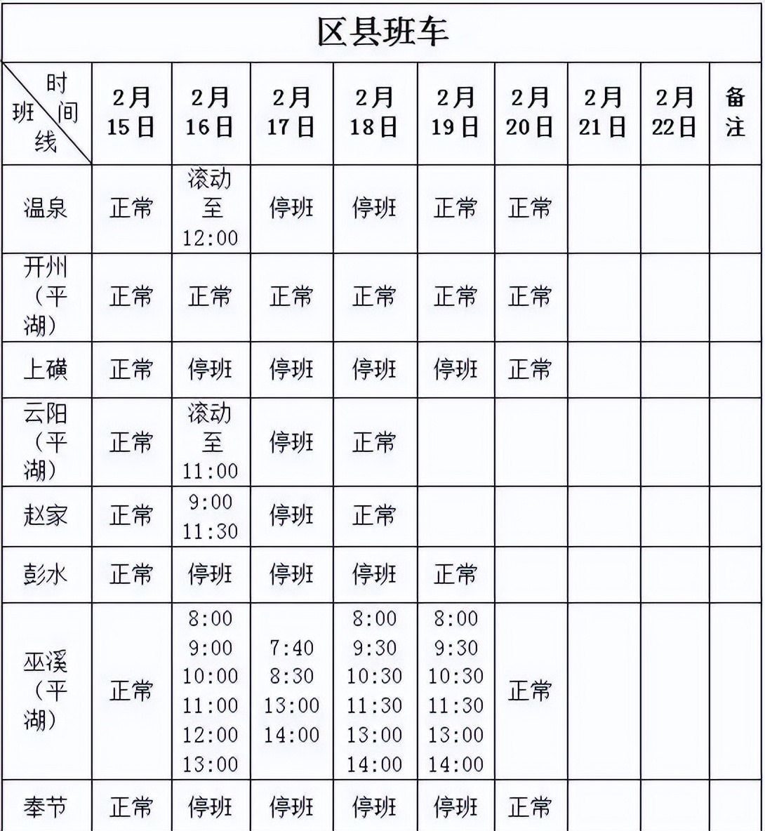 一、详细复班信息请咨询万州车站工作人员,咨询电话:58585656;
