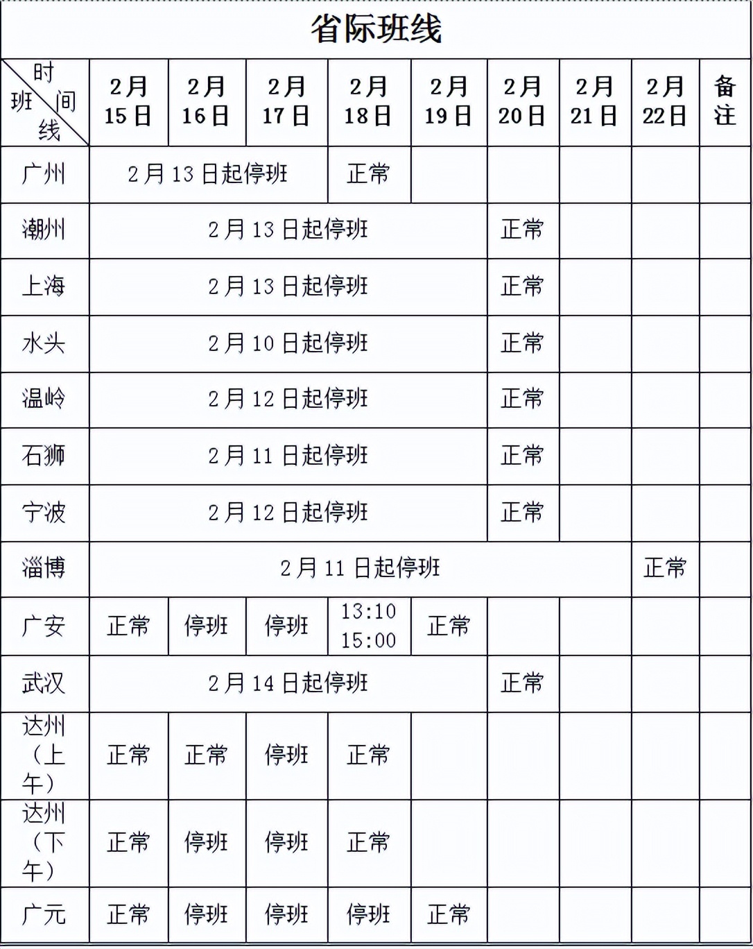二、如遇恶劣天气等特殊情况,以车站实际发车班次为准;