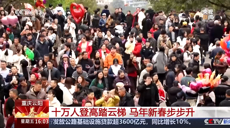 《十万人登高踏云梯 马年新春步步升》