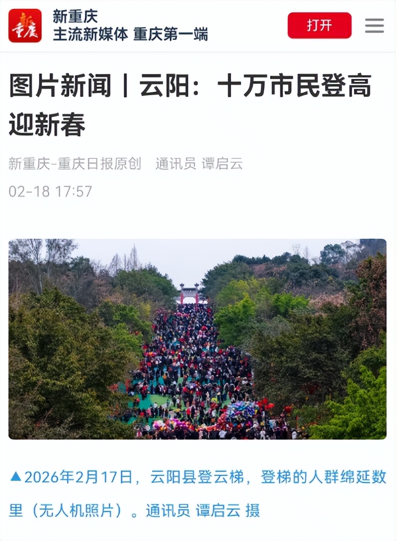 重庆日报关注云阳十万市民登高迎新春