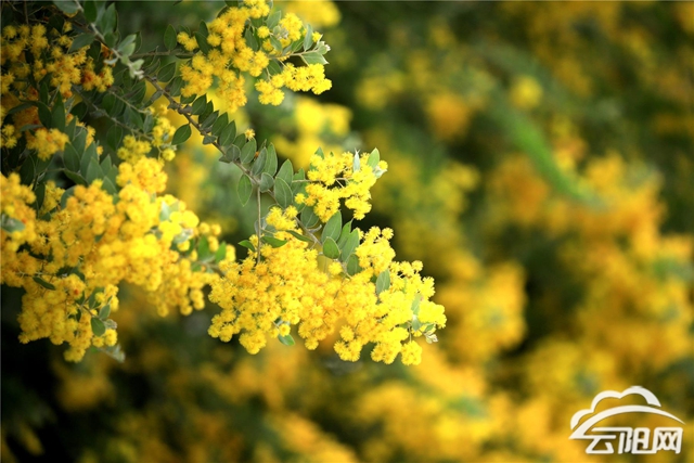 无数个毛茸茸的黄色小花球缀满枝头