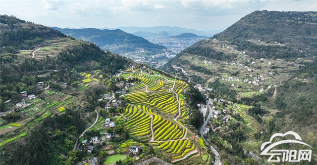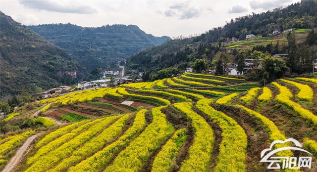 云阳网讯(记者 谭启云 熊堂)春风拂暖,万物生花。连日来,盘龙街道石楼村的500亩梯田油菜花进入盛花期。经过高标准农田改造后的层层梯田,犹如大地的调色盘,与金色的花海相拥相融,绘就出一幅春意盎然的田园新画卷,也奏响了农旅融合的乡村振兴“春日序曲”。