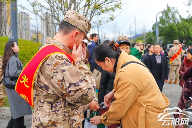 广场上,像这样的告别还有很多。亲人们站在队伍边上,目光追随着自己的孩子、爱人、兄弟。有人偷偷抹泪,有人用力挥手。带着亲人的嘱托与期盼,这些年轻的军人将奔赴祖国各地,用青春和热血书写属于他们的迷彩荣光。