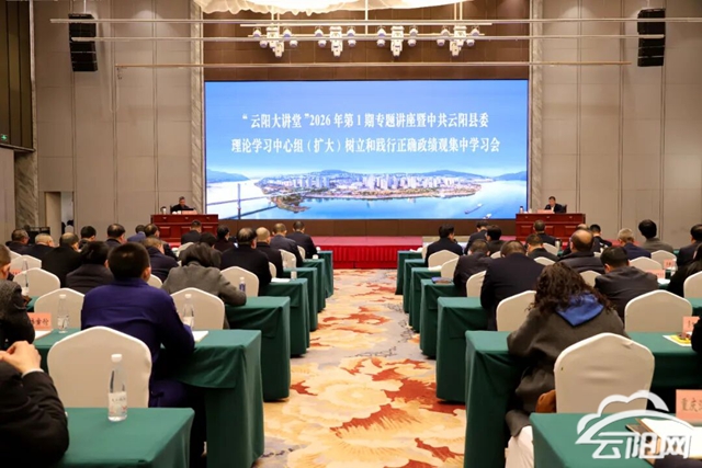 3月18日,“云阳大讲堂”2026年第1期专题讲座暨县委理论学习中心组(扩大)树立和践行正确政绩观集中学习会举行。重庆大学大数据与软件学院副院长张小洪受邀作专题讲座,县委书记陈道彬主持并讲话。