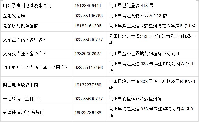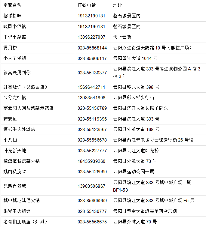 小八仙、兮兮龙虾馆、朱光玉火锅馆、老船坊现做鲜鱼馆、恒都牛肉.....各类中餐、火锅、汤锅、烧烤应有尽有,解锁舌尖上的云阳。