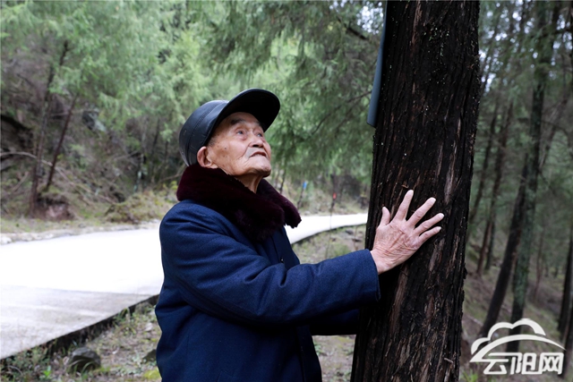 近日,86岁的牟方坤在儿子牟伦奎的搀扶下,再次走进熟悉的山林。松软的落叶铺满山路,树木挺拔,枝叶在风中轻响。老人伸出粗糙的手,轻轻抚摸着树干,像是在和多年未见的老朋友打招呼。