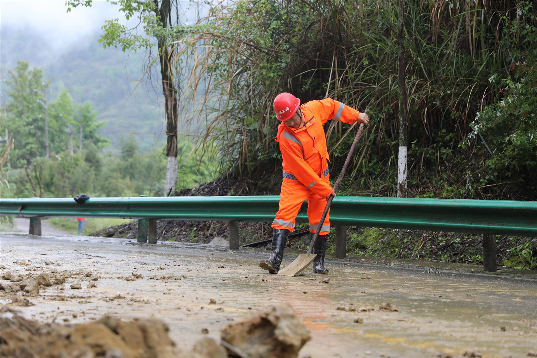 国道G348是连接云阳与万州、奉节的重要干线公路。事发路段位于南溪镇陶家湾,记者在现场看到,大量泥石和树木倾覆在路面,对车辆通行造成较大影响。险情发生后,县公路事务中心第一时间调派应急抢险队员赶赴现场,实施交通管制,并组织机械开展路面清障作业。