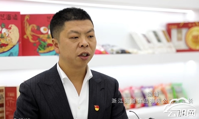 2014年,三千平方米的工厂建成,有人劝梁锋用机器代替手工“偷个懒”,他却在车间里泡了几个月,反复调试参数。“机器没有感觉,但我有。”他用带着疤痕的手指一次次按压机器产出的面,感受软硬与弹性,直至机器复刻出手工揉面的质感。2018年,“浙江面道食品有限公司”成立,“艺面道”正式注册商标,展厅里复原的老石磨、悬挂的木牌,成了他向访客讲述传承的载体。