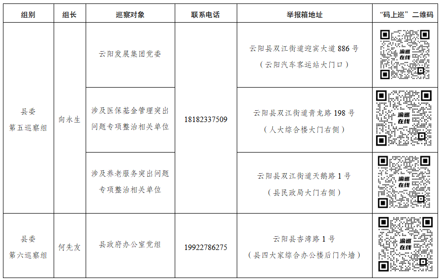 巡察期间,各巡察组设立专门举报电话、举报信箱和“码上巡”二维码,主要受理反映被巡察党组织领导班子及其成员、下一级党组织主要负责人、重要岗位领导干部问题和涉及专项整治领域相关问题及问题线索的来信来电来访。其他不属于巡察受理范围的信访问题,将按规定转交被巡察党组织和有关部门处理。巡察受理信访举报时间到2026年7月22日18时截止。
