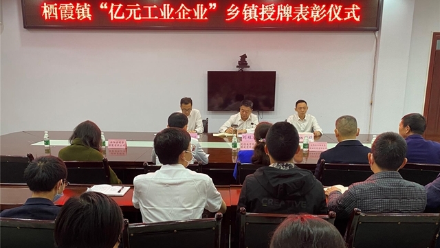 4月28日,县委常委、政法委书记刘桂虎为栖霞镇授予“‘亿元工业企业’”乡镇”奖牌。[详细]