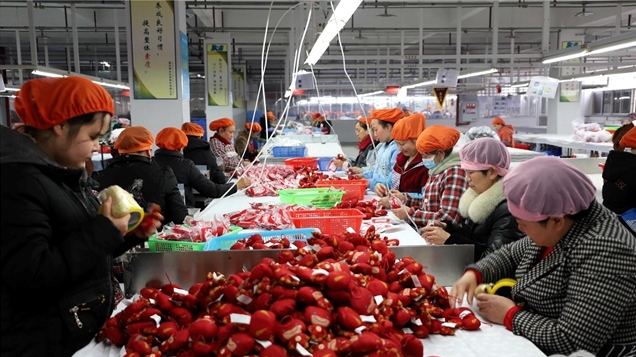 3月2日,在雄业玩具生产车间,多条加工生产线有序运转,工人们在各自岗位上赶工,经过裁剪、缝纫、充棉、包装等流程后,一个个精致的毛绒玩具呈现眼前,将销往国外。[详细]